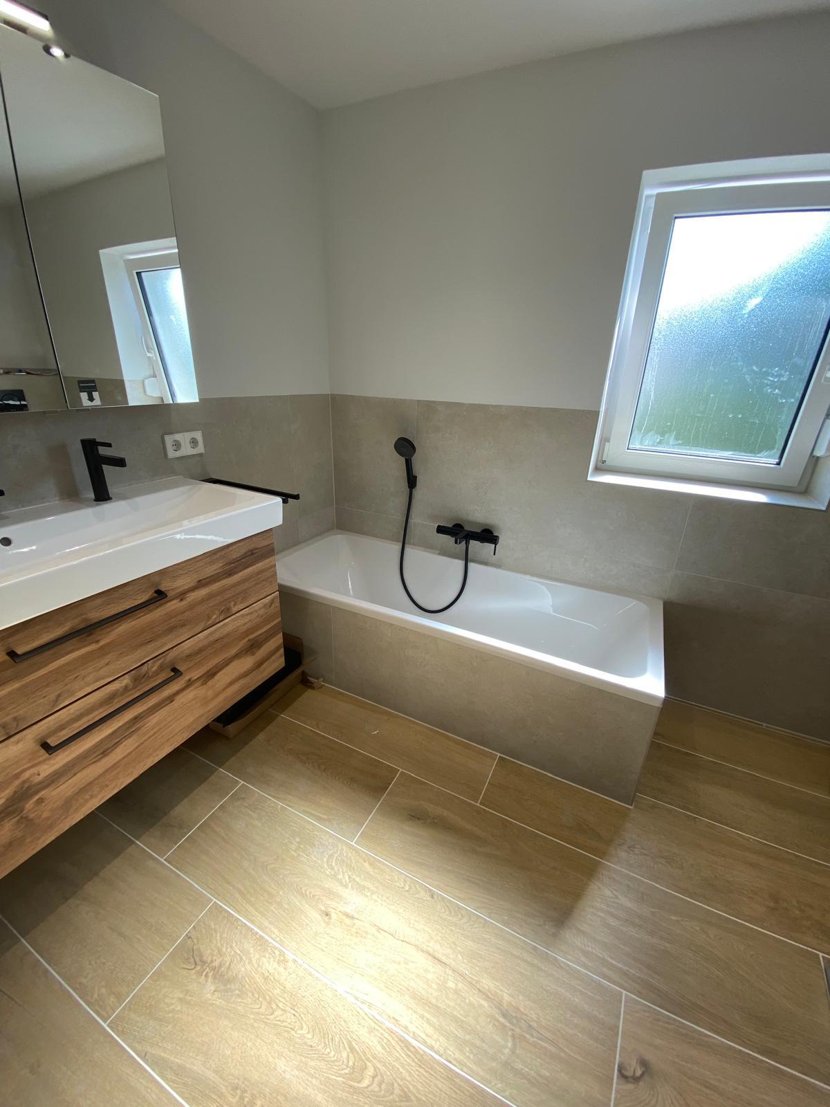 Wir bieten Ihnen die komplette Abwicklung der Badsanierung. Die Gewerke Sanitär und Fliesen werden direkt von unserem erfahrenen Team durchgeführt, wodurch wir höchste Qualität und eine zügige Fertigstellung gewährleisten können. Wir koordinieren alle weiteren beteiligten Handwerksfirmen und stehen Ihnen jederzeit zur Verfügung – sei es für Rückfragen, unvorhergesehene Änderungen oder die Auswahl von Materialien.